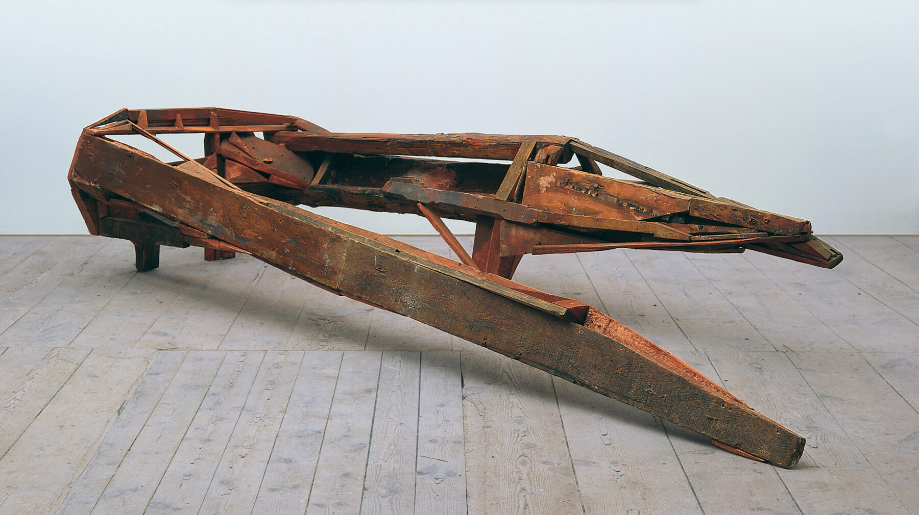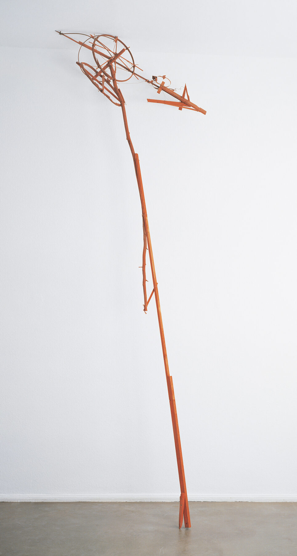 O.T., 2008, 75 x 160 x 16 cm – Eine Variante aus Bronze ist vorhanden -(Foto: J.W.) Haus oder Weg, 2003, Holz, Farbe, 65 x 245 x 252 cm (Foto: B.S.) Zusammenhalter, 1997, Holz, Strick, Farbe, 66 x 80 x 59 cm. ( Privatbesitz ) (Foto: B.K.) Bett, 2002, Holz, Farbe, 57 x 305 x 100 cm (Foto: B.K.) Meisterin, 2001, Holz, 190 x 135 x 105 cm ( St. Annen-Museum, Lübeck ) (Foto: B.K.) Tor, 2002, Holz, 215 x 350 x 80 cm (Foto: B.K.) Unter die Decke geklemmt, 2008, Holz, Metall, Strick, Farbe, 360 x 115 x 160 (Foto: B.K.) Hohe Stehende, 2006, Holz, Farbe, 301 x 53 x 53 cm (Foto: B.K.) Hängende mit Gegengewicht, 2008, Holz, Seil, Farbe, 280 x 63 x 50 cm (Foto: B.K.) Hinhalten, 2006, Holz, Farbe, Draht, 150 x 84 x 33 cm (Foto: B.K.) Zange, 2006, Holz, Farbe,179 x 50 x 40 cm (Foto: B.K.) O.T., 2008, 75 x 160 x 16 cm – Eine Variante aus Bronze ist vorhanden -(Foto: J.W.) Haus oder Weg, 2003, Holz, Farbe, 65 x 245 x 252 cm (Foto: B.S.) Zusammenhalter, 1997, Holz, Strick, Farbe, 66 x 80 x 59 cm. ( Privatbesitz ) (Foto: B.K.) Bett, 2002, Holz, Farbe, 57 x 305 x 100 cm (Foto: B.K.) Meisterin, 2001, Holz, 190 x 135 x 105 cm ( St. Annen-Museum, Lübeck ) (Foto: B.K.) Tor, 2002, Holz, 215 x 350 x 80 cm (Foto: B.K.) Unter die Decke geklemmt, 2008, Holz, Metall, Strick, Farbe, 360 x 115 x 160 (Foto: B.K.) Hohe Stehende, 2006, Holz, Farbe, 301 x 53 x 53 cm (Foto: B.K.) Hängende mit Gegengewicht, 2008, Holz, Seil, Farbe, 280 x 63 x 50 cm (Foto: B.K.) Hinhalten, 2006, Holz, Farbe, Draht, 150 x 84 x 33 cm (Foto: B.K.) Zange, 2006, Holz, Farbe,179 x 50 x 40 cm (Foto: B.K.)
